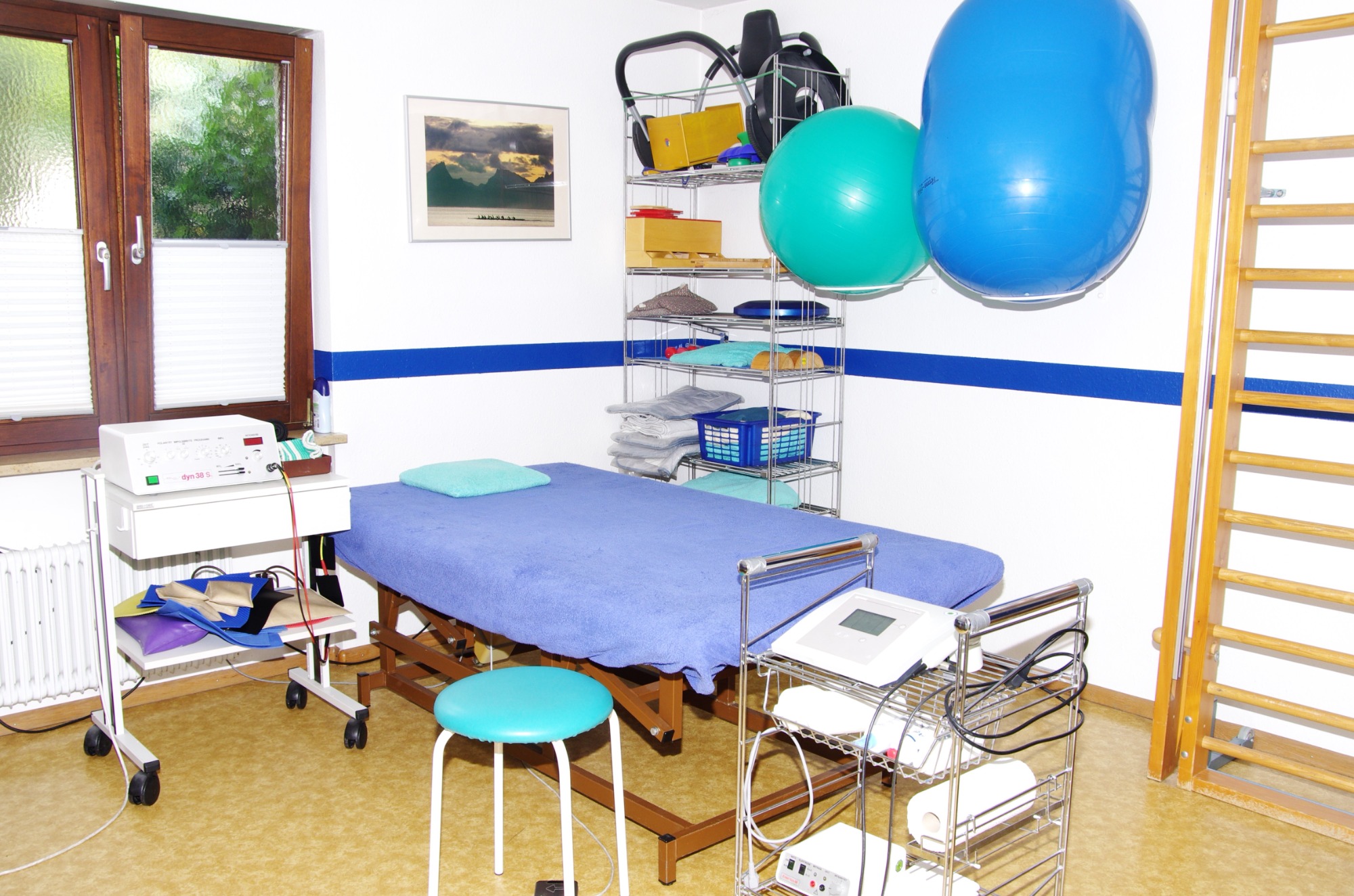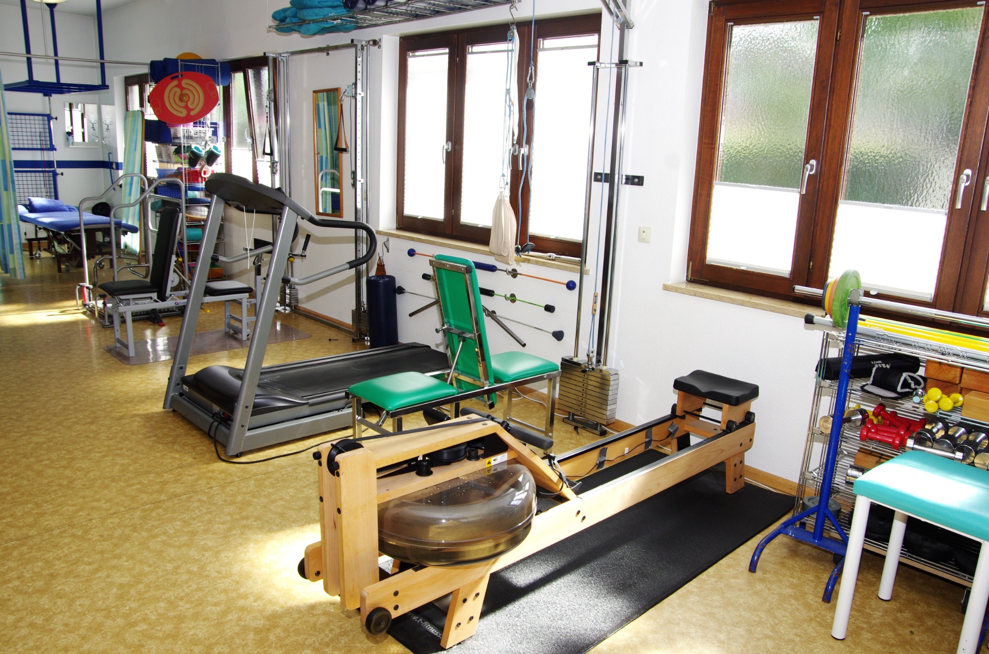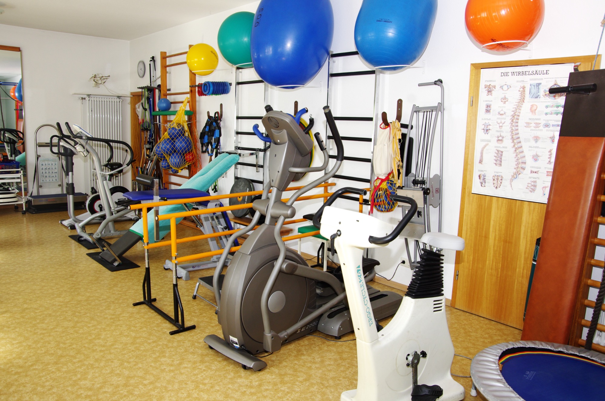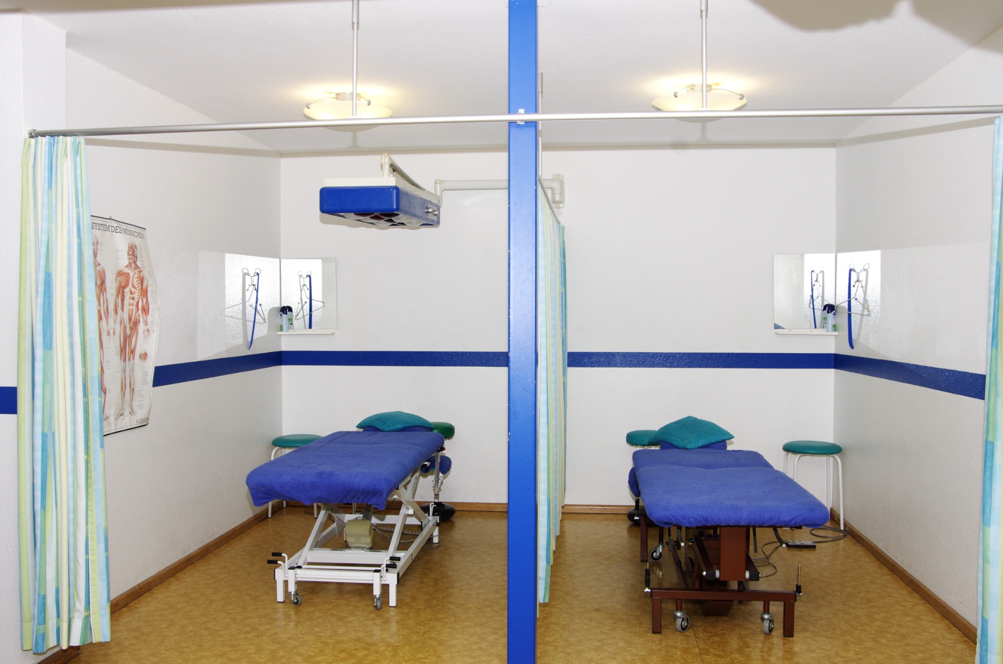 Hier finden Sie einen kleinen Einblick in unsere gut ausgestattete Praxis mit Einzelbehandlungs-Zimmern, Kabinen und großem Trainingsraum.